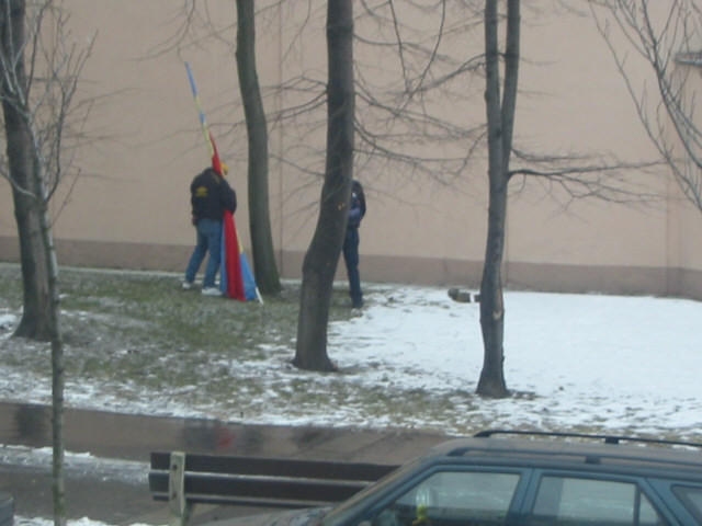 Zabavování vlajek na tyčích...odnesly...