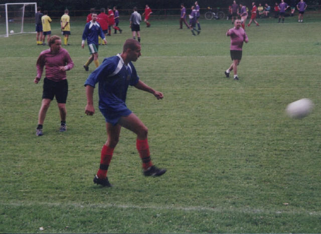 M.Karhan u míče, nabíhá Šálek